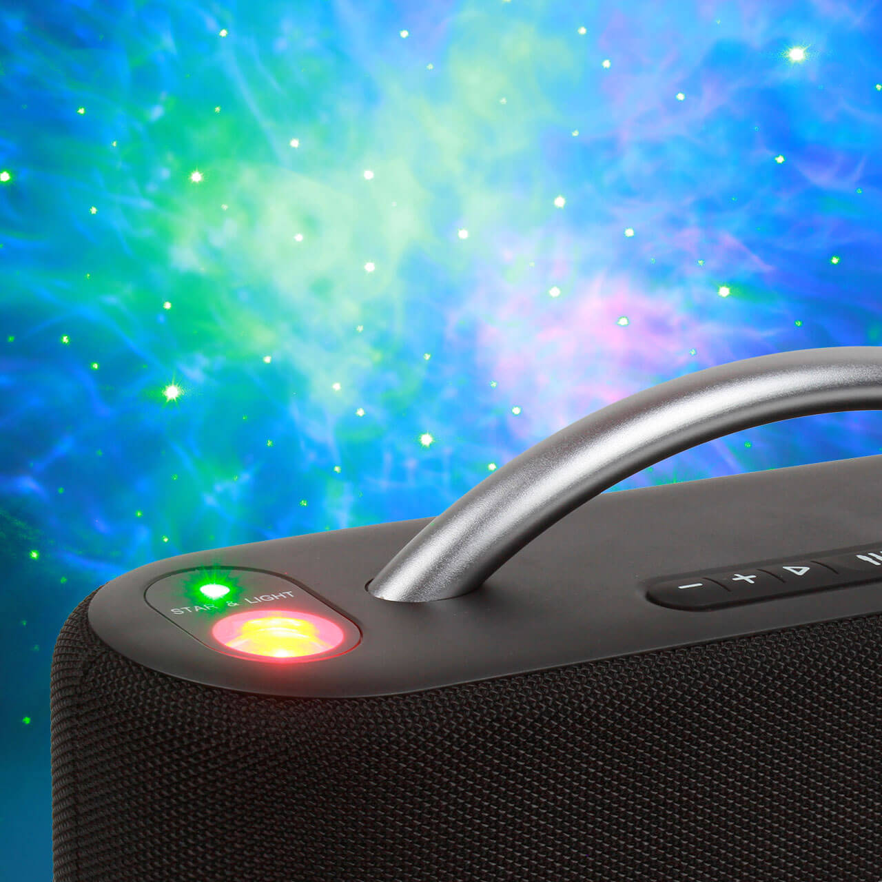 El Altavoz Swiss+Go Altavoz Bluetooth Portátil ARA P-60 con Proyector redefine la experiencia auditiva y visual. Con una potencia impresionante de 60W, proyecta un cautivador cielo estrellado mientras llena tu espacio con un sonido excepcional. Equipado con Bluetooth V5.3, una robusta batería de 4400mAh para 12 horas de reproducción (con la luz apagada) y un diseño compacto de 370 x 165 x 106 mm, este altavoz garantiza una experiencia de fiesta única y emocionante.