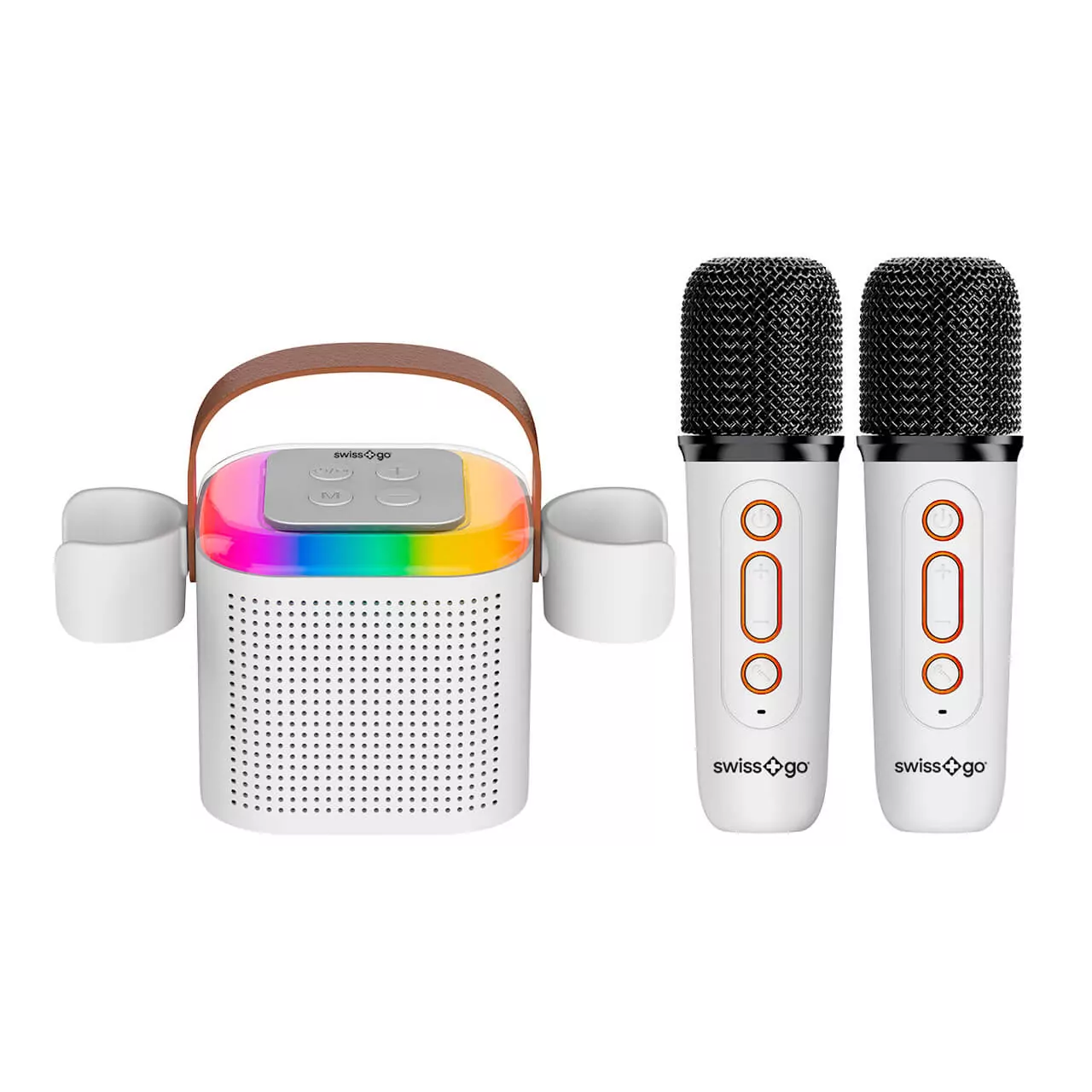 Swiss+Go Altavoz Bluetooth Portátil Magic Party Karaoke con 2 Micrófonos, 5W, Led, medidas 94x94x80 mm