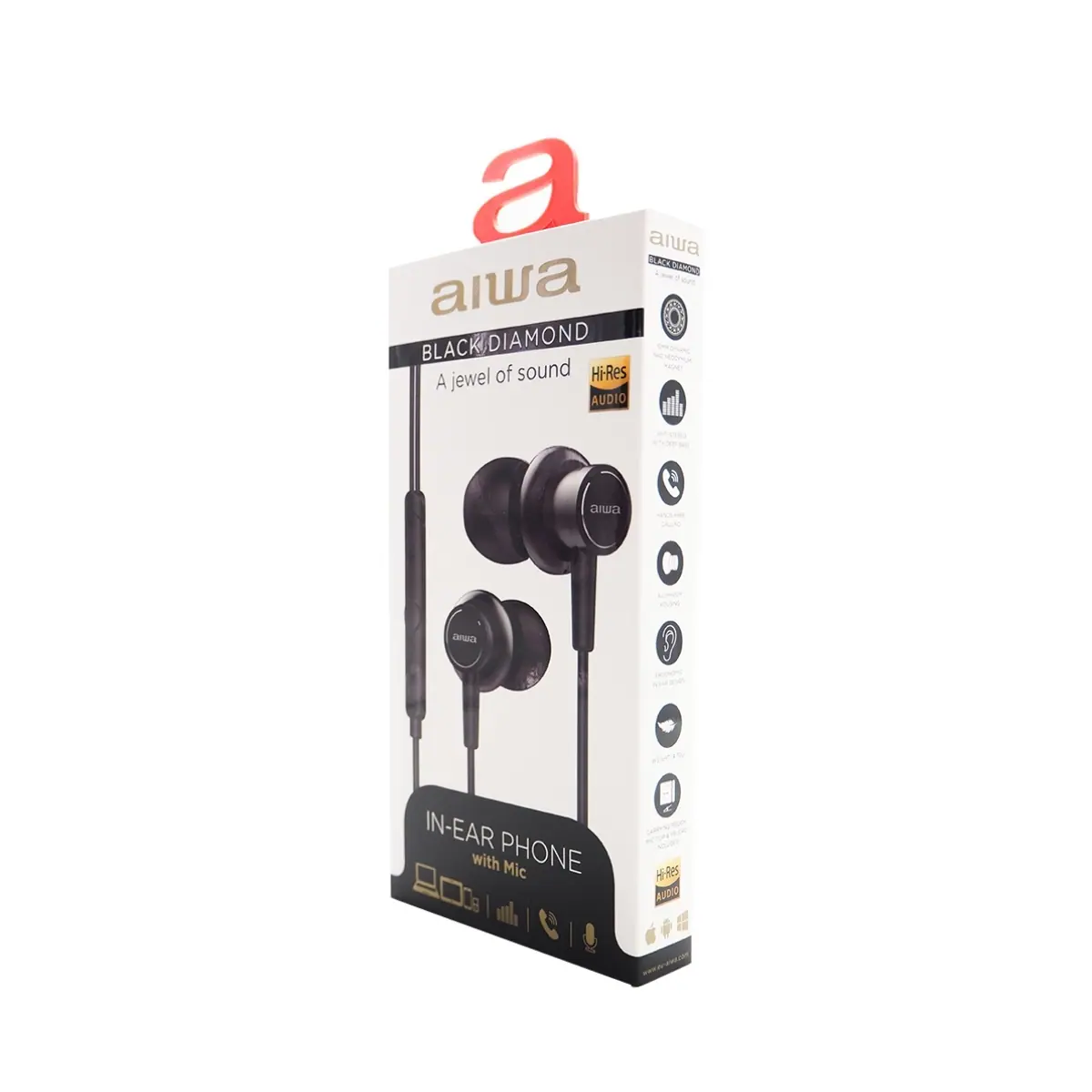 Aiwa Auricular ESTM-500BK 10Hz-40kHz, cable 1.2 mts, Micrófono, Negro
