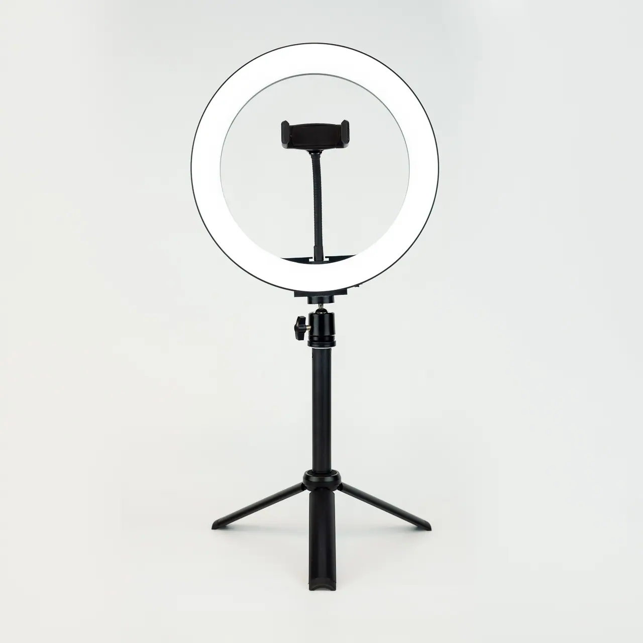Aro de luz led swiss+go con soporte para trípode y soporte para teléfono inteligente. Ideal para esos momentos en los que necesites luz adicional para maquillarte, hacer fotos, grabar vídeos, leer libros, transmitir en vídeo en plataformas como Youtube o Tiktok, o hacer una videollamada. Además, puedes poner el móvil tanto en horizontal como en vertical.