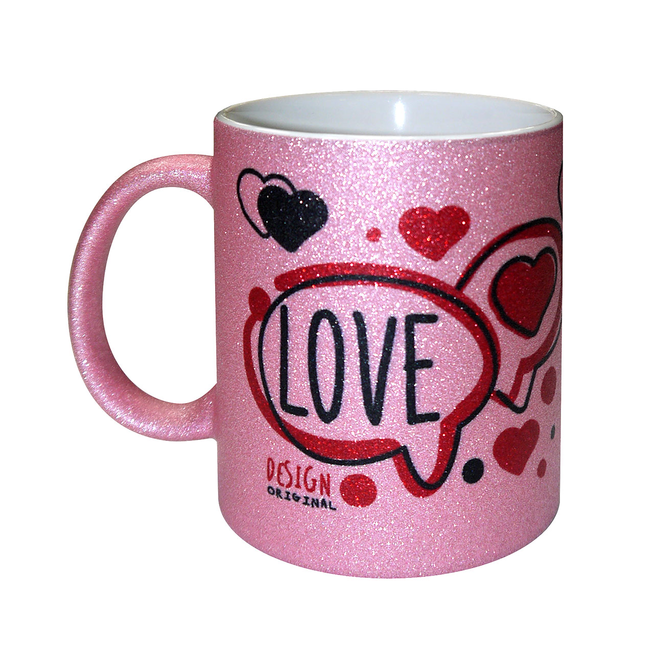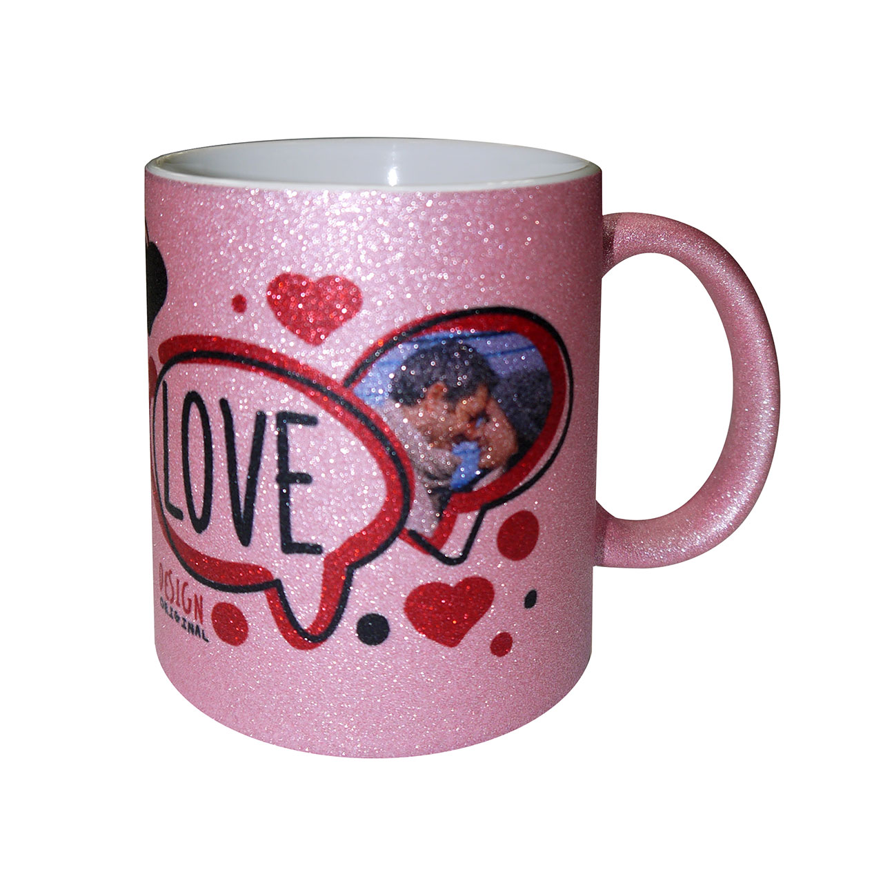AP Taza Cerámica Personalizable 11oz Interior Blanco, Rosa Purpurina