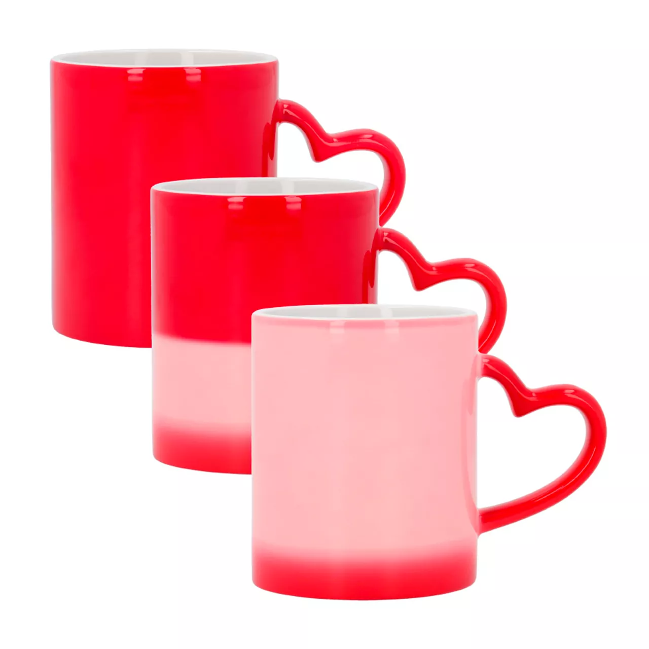 Descubre la Taza Mágica Roja con Asa de Corazón, el regalo perfecto que revela una foto o diseño personalizado al verter líquido caliente.
