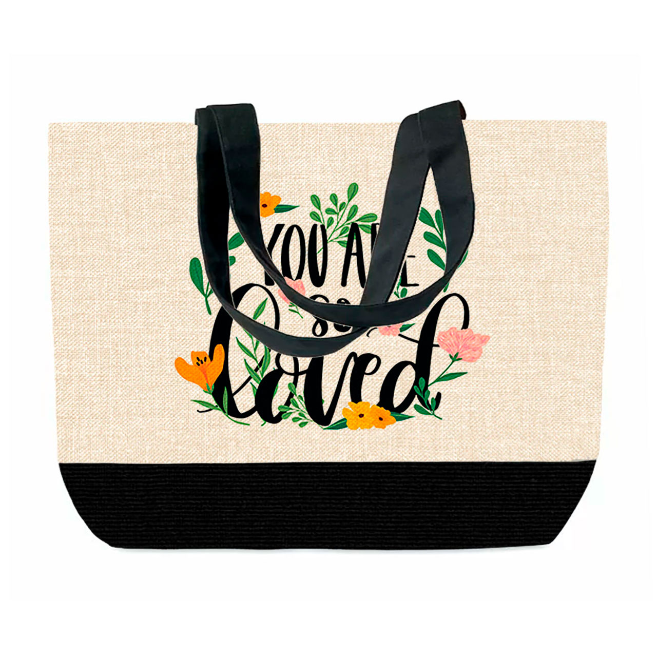 AP Bolsa con cremallera Personalizable 52×47 cm Lino, Asa y fondo Negro