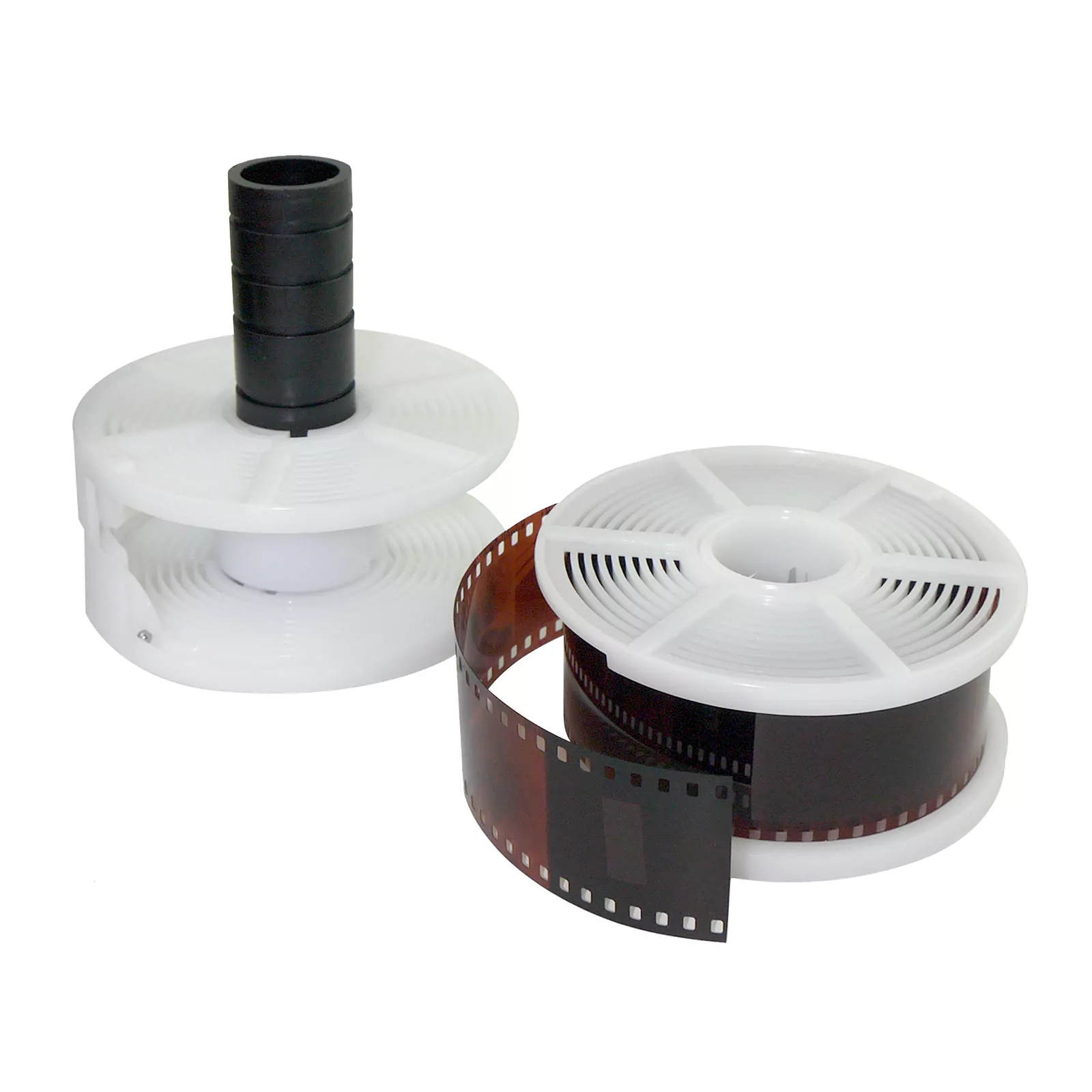 Tanque de revelado para películas en blanco y negro y color equipado con dos espirales. Resistente al calor, estanco y opaco a la luz.