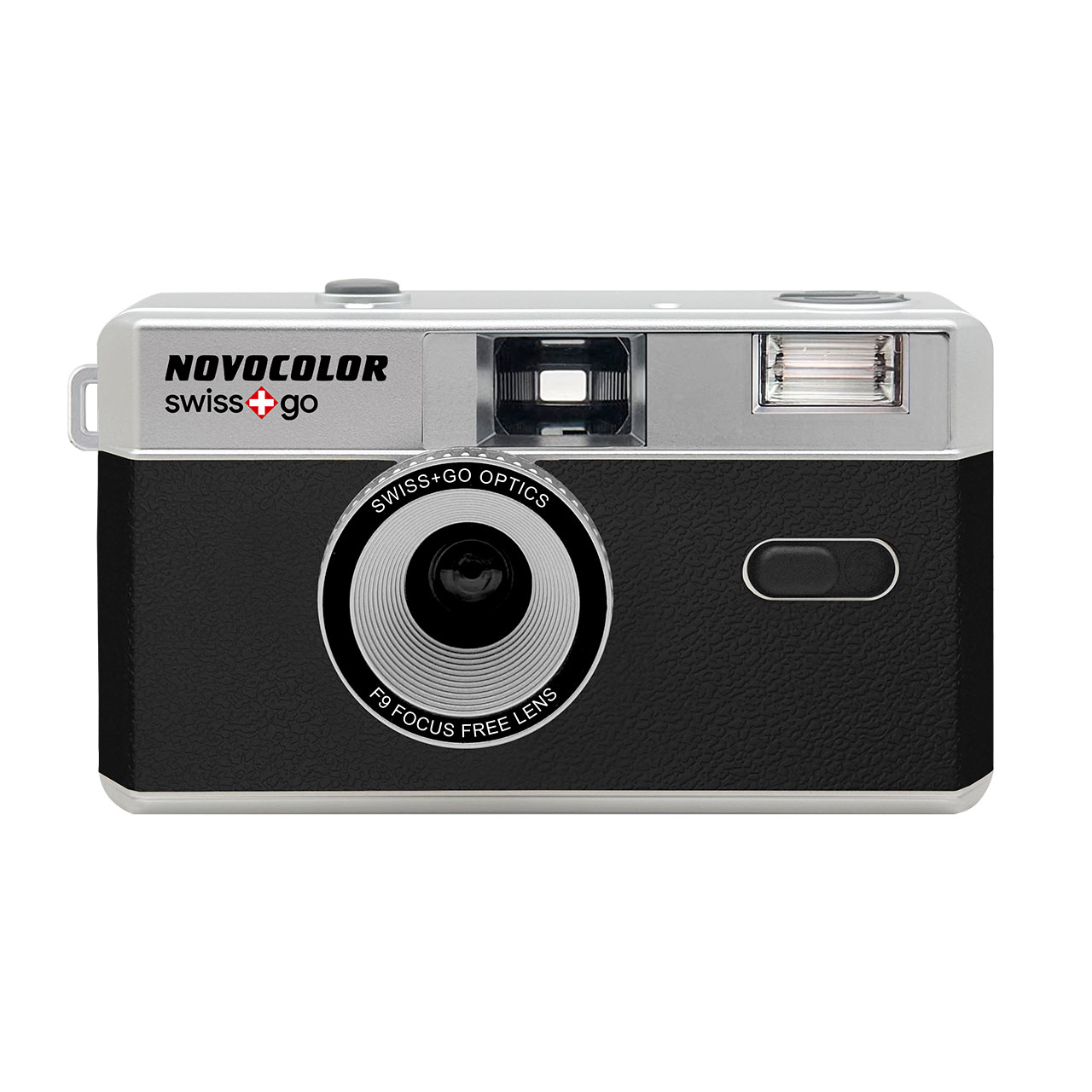 swiss+go Novocolor Cámara Analógica 35mm Negra con Flash + funda y correa Negra | para películas 35mm | Lente 31 mm f/9 | Pila 1xAAA alcalina no incluida