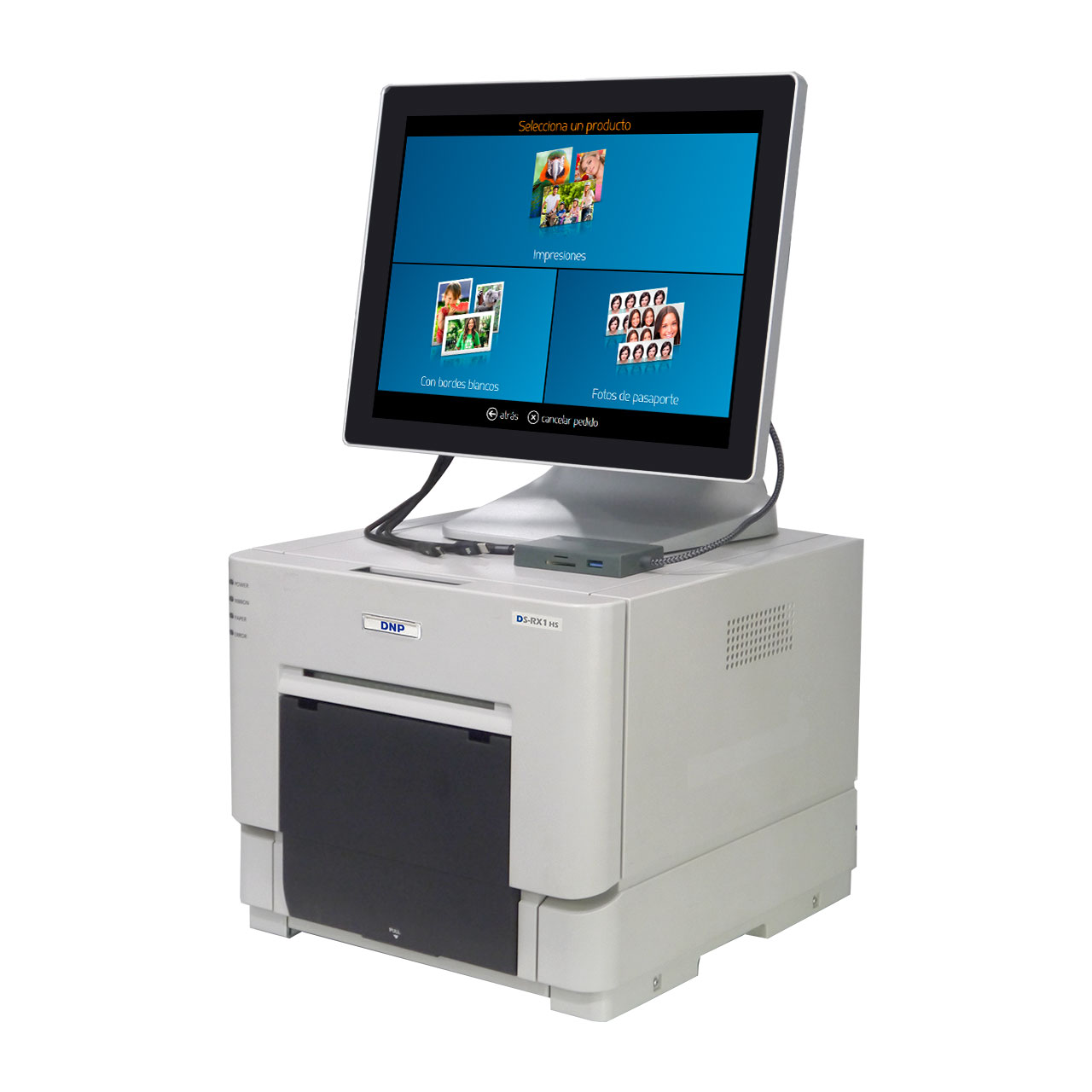 - Equipo compuesto por un Kiosco fotográfico y la impresora fotográfica DNP RX1HS.