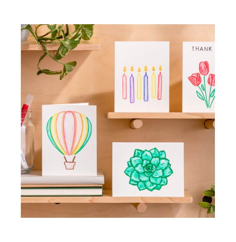Fácil de personalizar con el tapete para tarjetas Cricut Card Mat 2×2 y los rotuladores de acuarela Cricut (se venden por separado)
